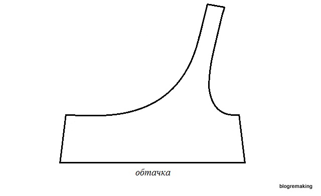 Для обработки горловины и проймы спинки мы будем использовать прямую обтачку, которую можно легко построить, обведя по контуру деталь спинки, затем отложить по боковым срезам от нижних точек проймы 5-10см, полученные точки соединить прямой линией.